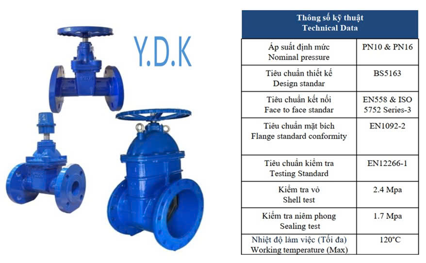 Một số sản phẩm nổi bật của thương hiệu YDK bao gồm : Van cổng ty nổi, van cổng ty chìm, rọ bơm, van an toàn, van bướm, van xả khí, vam giảm áp, van một chiều, y lọc,…